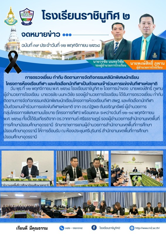การตรวจเยี่ยม กำกับ ติดตามการจัดกิจกรรมคลินิกพิเศษนักเรียน โครงการห้องเรียนกีฬา และคัดเลือกนักกีฬาเป็นตัวแทนเข้าร่วมการแข่งขันกีฬาแห่งชาติ